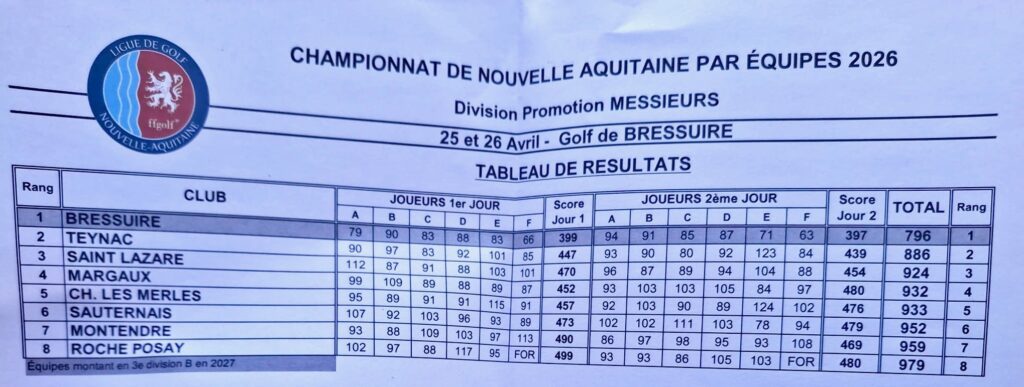 Nous rappelons que pour faire partie de l'équipe première il faut être membre du golf, à jour de licence et de cotisation AS